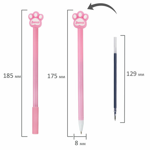 Шариковая ручка серии FUNNY YUMMY с ярким корпусом и оригинальным дизайном топперов в виде лапки. Благодаря привлекательному дизайну ее не захочется выпускать из рук. Диаметр стандартного пишущего узла, равный 0,7 мм, создает линию письма, равную 0,35 мм. Длина сменного стержня составляет 130 мм. Цвет чернил - синий.