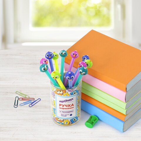 Ручка с акриловым топпером шариковая FUNSTER "ACRYL MIX", СИНЯЯ, ассорти, пишущий узел 0,7 мм, линия письма 0,35 мм, 144380