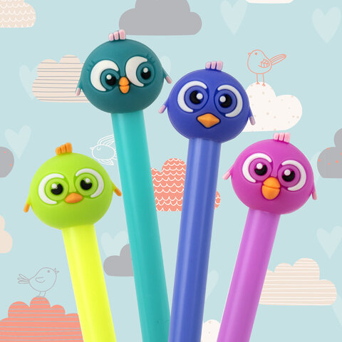 Шариковая ручка масляная ЮНЛАНДИЯ "Птенец" с милой игрушкой на корпусе.