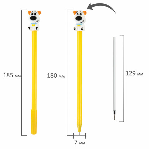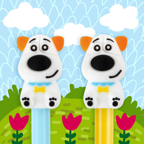 Шариковая ручка серии FUNNY YUMMY с ярким корпусом и оригинальным дизайном топперов в виде собачки. Благодаря привлекательному дизайну ее не захочется выпускать из рук, а чернила на масляной основе обеспечат мягкое плавное письмо. Диаметр игольчатого пишущего узла, равный 0,7 мм, создает линию письма, равную 0,35 мм. Длина сменного стержня составляет 129 мм. Цвет чернил - синий.