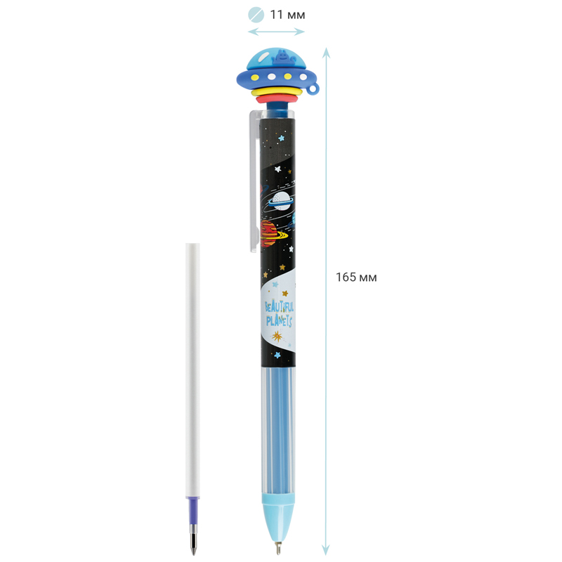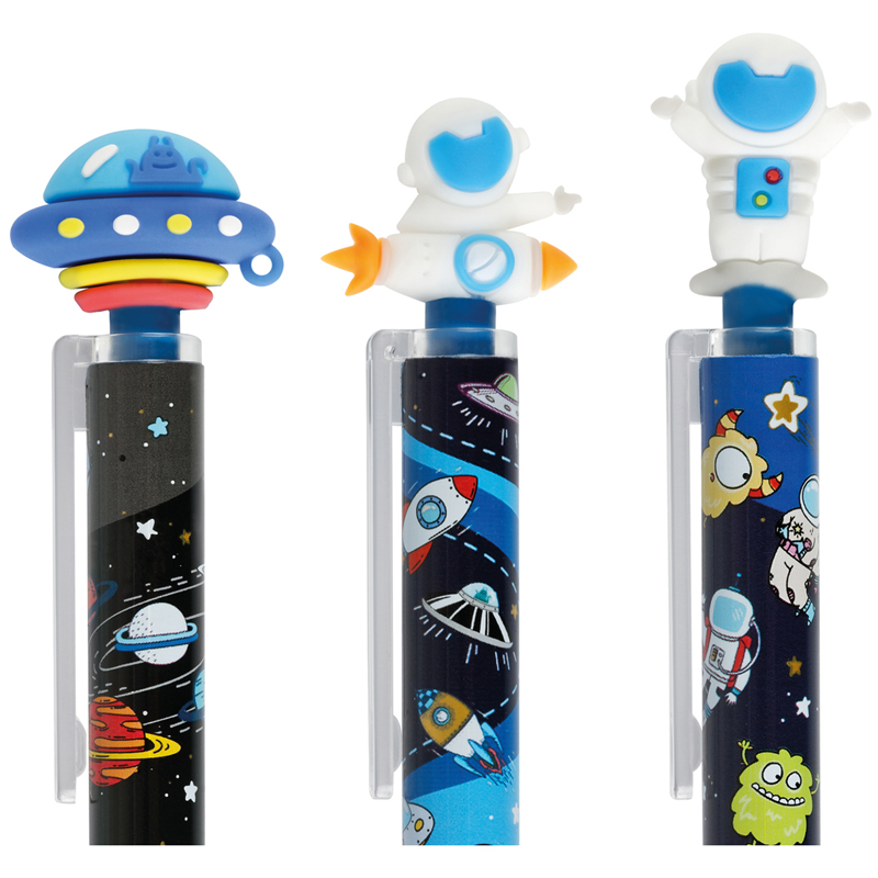 Шариковая автоматическая ручка MESHU Space Aliens станет ярким атрибутом отличного настроения на работе или учёбе. Диаметр пишущего узла – 0,5 мм. Благодаря этому ручка прекрасно подойдёт для любого стиля письма. Толщина линии письма – 0, 3 мм, а длина письма может достигать 260 метров. Изделие обладает необычным дизайном: ручка с рисунком на корпусе украшена мини-игрушкой в космической тематике. Благодаря чернилам синего цвета на масляной основе ручку можно ежедневно использовать в работе или учёбе. Предусмотрена возможность замены стержня.