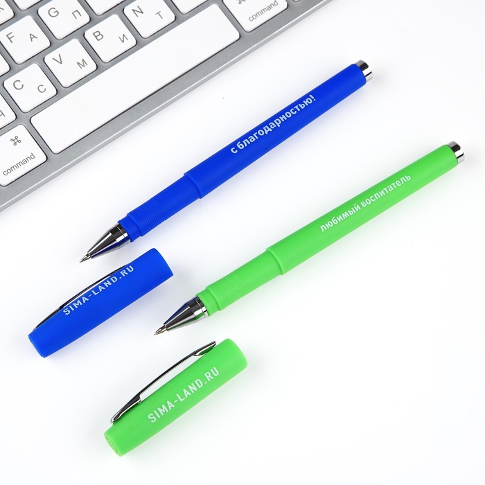 Ручка гелевая синяя паста 0.7 мм с колпачком «Ручки отличника»