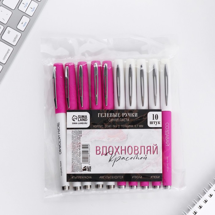 Ручка гелевая синяя со стираемыми чернилами Mazari "CATODREAM" + 9 стержней в комплекте, игольчатый пишущий узел 0,5 мм, термочувствительные чернила МИКС