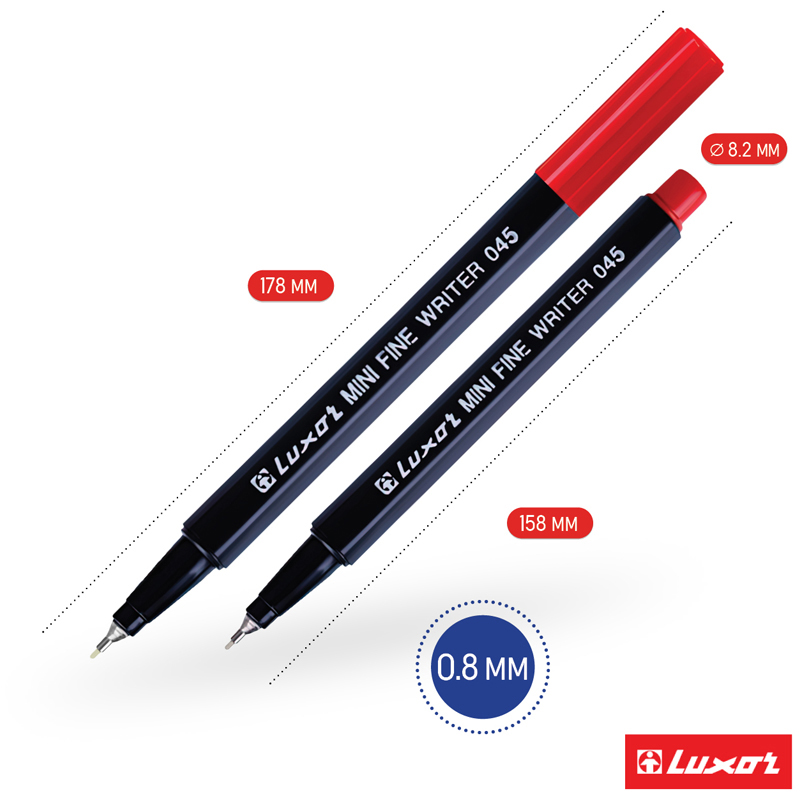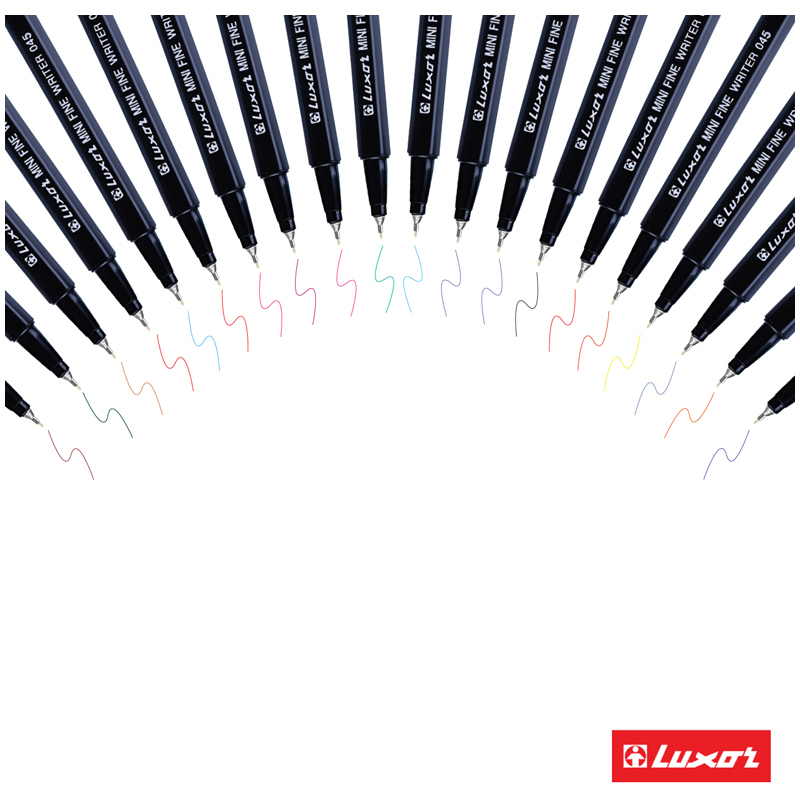 Набор капиллярных ручек Luxor Fine Writer – линер, тонко пишущий фломастер и чертёжный инструмент одновременно. Диаметр пишущего узла: 0,8 мм.
