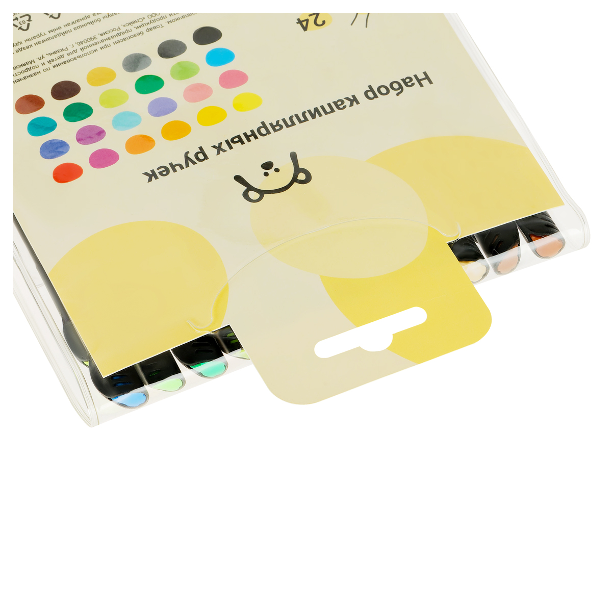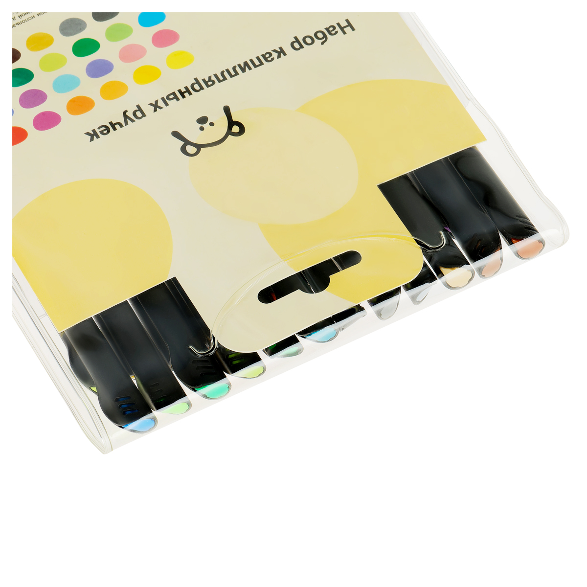 Чёрный круглый корпус приятен на ощупь благодаря покрытию soft-touch. Упаковка — прозрачный ПВХ чехол с европодвесом. Дизайн набора — переосмысление шедевров живописи. Забавная и малая упаковка поднимет настроение и вдохновит на творчество.