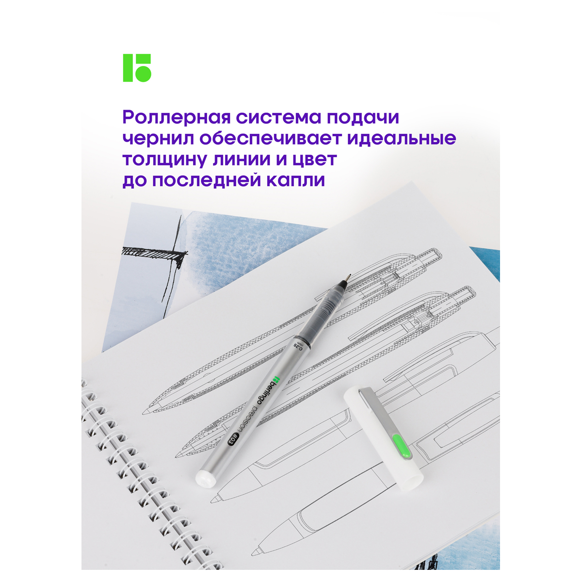 Пигментные линеры Precision – универсальный инструмент для чертежных и творческих работ с водостойкими чернилами на пигментной основе. Благодаря содержанию твердых, но очень мелких частиц пигмента краска остается на поверхности материала, а не впитывается внутрь. В результате, рисунок или надпись сделанный такими чернилами надолго сохраняет первоначальную яркость и насыщенность, не выцветает на солнце. Пигментные чернила не боятся влаги и могут сочетаться в работе и творчестве с большинством используемых материалов: акварелью, маслом, акрилом не теряя своих свойств. Ph-нейтральность позволяет им сохранять структуру и характеристики материала-основы. Уникальным свойством линеров серии Precision является «роллерная» подача чернил. Сложная система сообщающихся полостей с микронными проемами для подачи воздуха внутрь ручки гарантирует идеальную толщину линии письма. А хранение чернил в жидком виде – стабильность цвет от начала работы до последней капли. Профессиональный пишущий узел не только обеспечивает толщину линии с шагом 0,05 мм, но и позволяет ручке продолжить писать, даже если забыть закрыть ее колпачком на срок до 72 часов. Удобное окошко на обороте ручке позволит контролировать остаток чернил и заранее подготовить новый инструмент. А металлический клип – надежно закрепить ручку на скетчбуке, планшете или кармане.