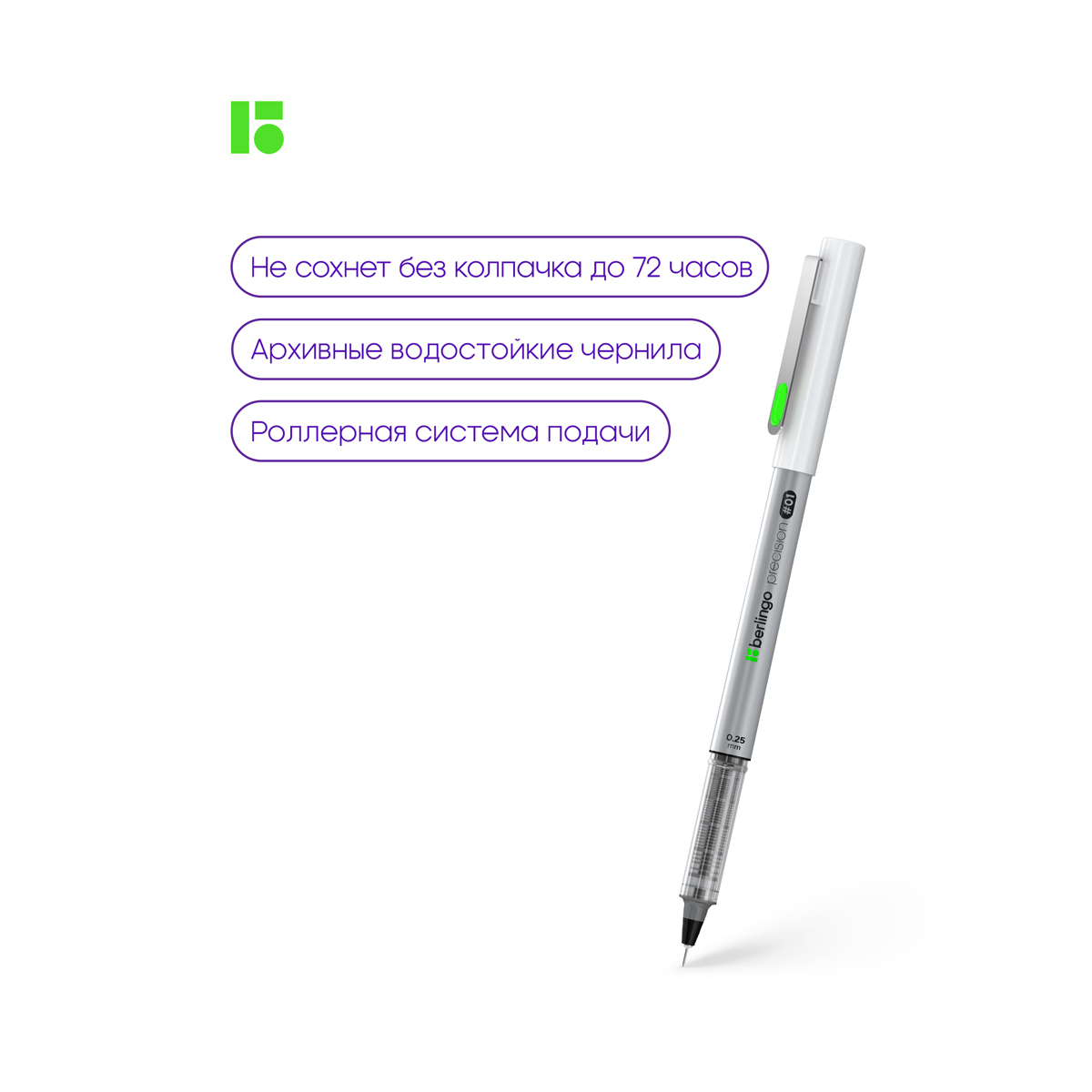 Набор линеров пигментных Berlingo "Precision" черные, 3шт., 0,25/0,35/0,6мм, европодвес