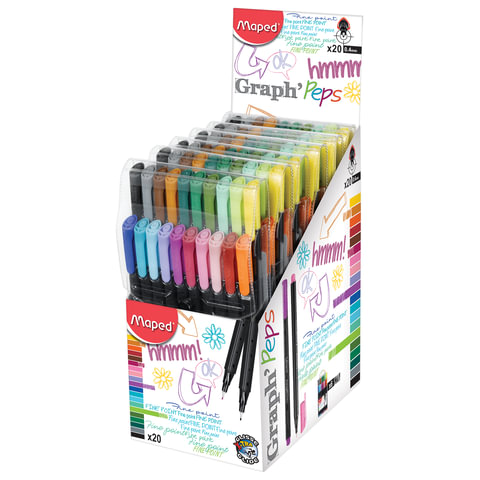 Набор капиллярных ручек серии "GRAPH'PEPS" с тонкой линией письма 0,4 мм. В наборе 20 насыщенных, хорошо пигментированных оттенков.