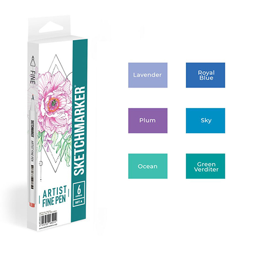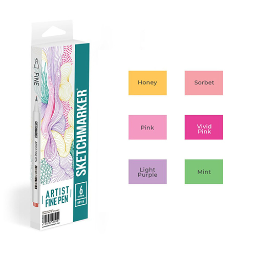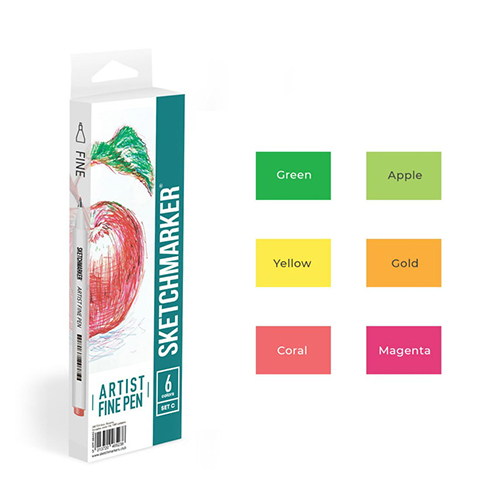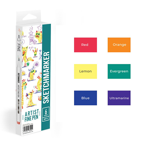 Набор капиллярных ручек (линеров) " Sketchmarker " Artist fine pen Basic 2 6цв