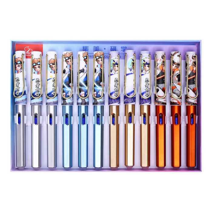 Ручка перьевая + 2 картриджа синих + поршень, на блистере, "Аниме", МИКС