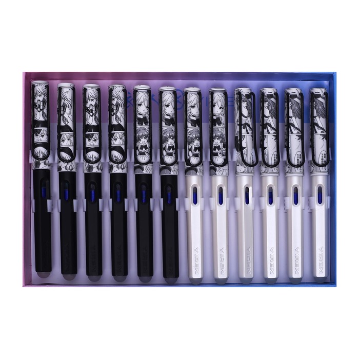 Ручка перьевая + 2 картриджа синих + поршень, на блистере, "Аниме", МИКС