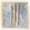 Ручка-роллер в корпусе из чернового матового анодированного алюминия, прошедшего пескоструйную обработку, с фирменным гравированным рисунком. Позолоченная отделка деталей с полировкой. ВНИМАНИЕ! С марта 2020г. подарочные коробки ручек ТМ Parker прекратили комплектоваться лифлетами (листовками с гарантийным талоном).
