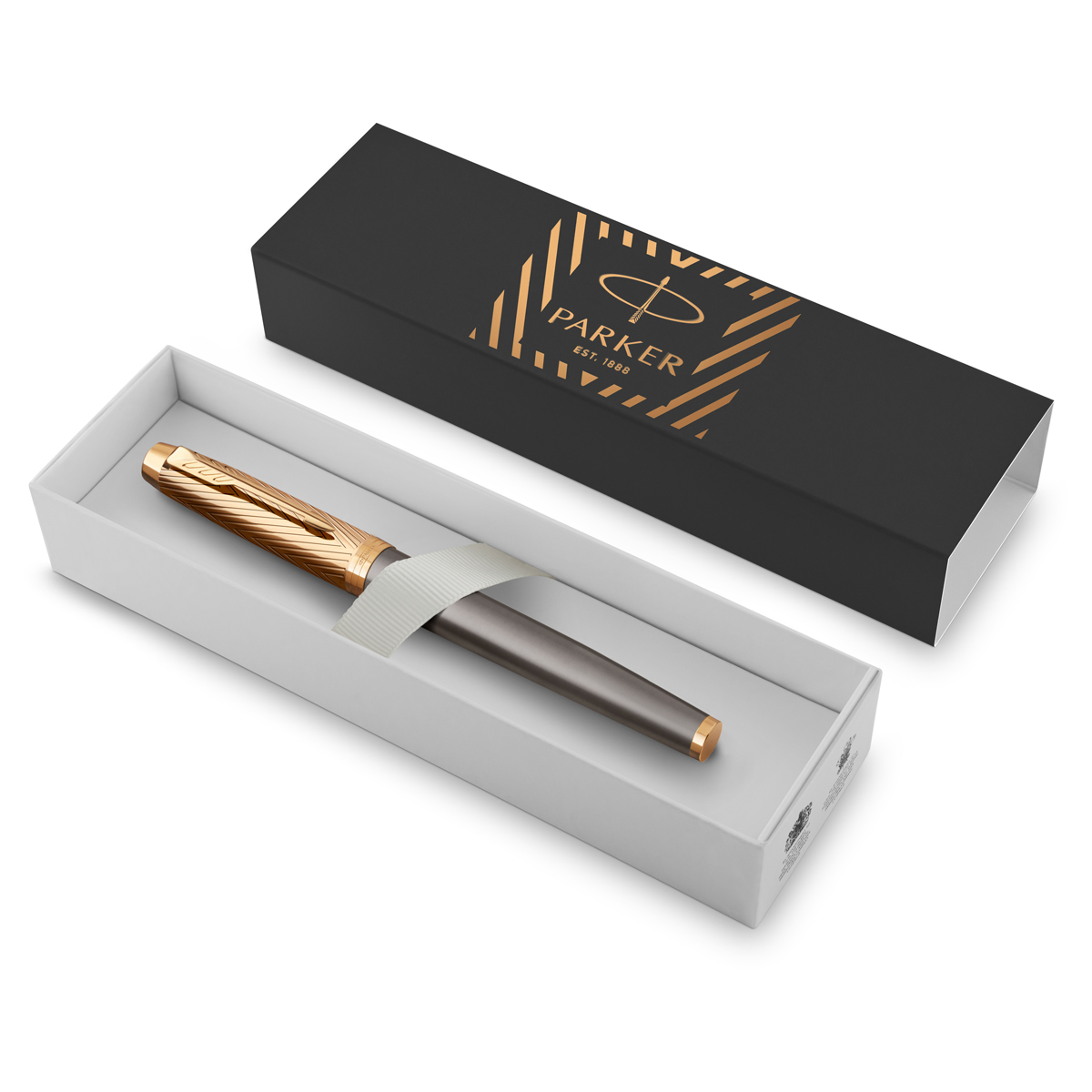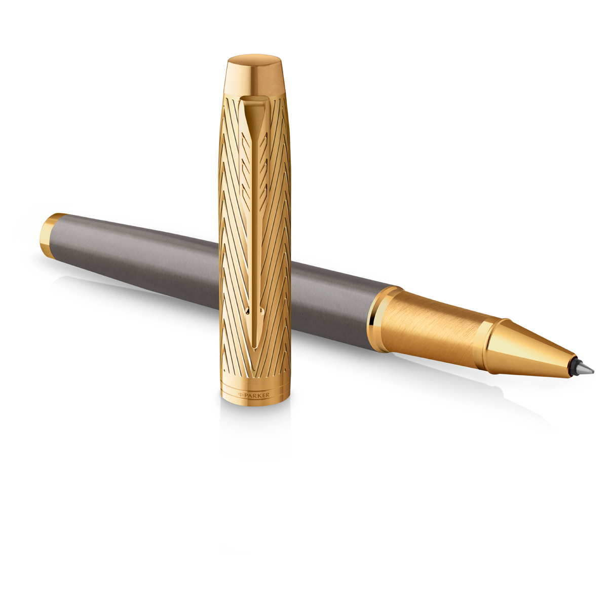 Ручка-роллер Parker из коллекции IM Premium Arrow выполнена из нержавеющей стали и покрыта матовым лаком металлик серого цвета. Колпачок дополнен гравировкой. Декоративные элементы с отделкой PVD золотого цвета. Ручка упакована в специальную картонную подарочную коробку Parker. В комплекте идет стержень роллер черного цвета, он находится под платформой с ручкой. Гарантия 1 год. Сервисный центр ООО "Сервис Пен". WhatsApp: +7 (926) 398-78-36 Тел.: +7 (499) 390-48-08, e-mail: info@servicepen.ru
