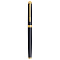 Ручка-роллер ручка Waterman из коллекции Hemisphere выполнена из латуни и покрыта лаком чёрного цвета. Декоративные элементы отделаны позолотой 23K. Ручка упакована в оригинальную премиальную подарочную коробку Waterman c откидной крышкой. В комплекте идет стержень роллер черного цвета, он находится под платформой с ручкой.