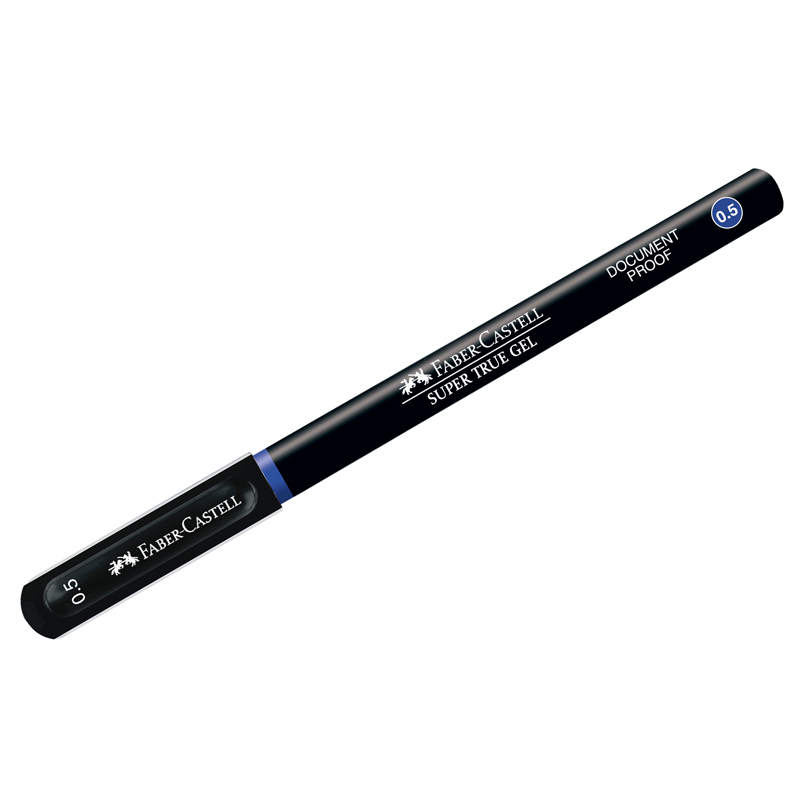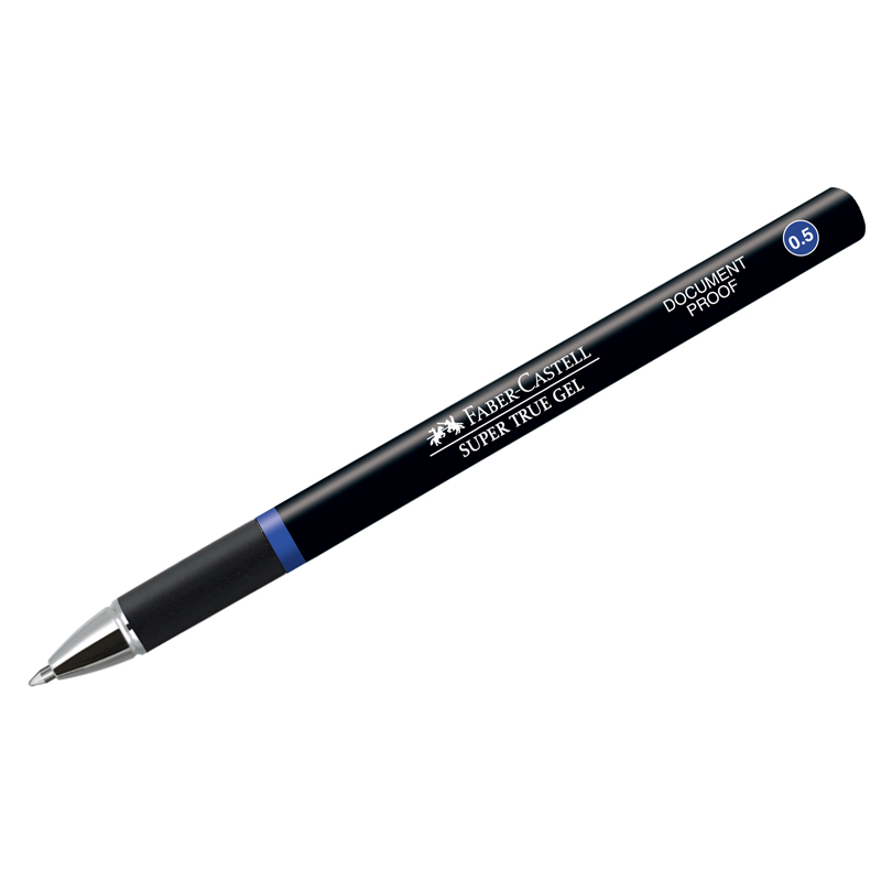 Одноразовая ручка-роллер Super True Gel от легендарного немецкого производителя Faber-Castell. Диаметр пишущего узла - 0,5 мм, что говорит о том, что изделие подходит для мягкого и тонкого типа письма. Благодаря универсальному синему цвету чернил ручка подходит для учебы, работы, для ведения документооборота, заметок в ежедневнике, рисунков в скетчбуке. Цвет корпуса изделия - чёрный, а цвет деталей соответствуют цвету ручки. Изделие обладает устойчивыми к выцветанию водостойкими чернилами, которые идеально подходят для подписи документов. Вместо привычного кнопочного механизма подачи стержня изделие имеет колпачок с пластиковым клипом. Он позволит прикрепить ручку к блокноту или ежедневнику и всегда иметь изделие под рукой. Ручка-роллер Super True Gel имеет поглощающий давление наконечник, а значит при письме напряжения в пальцах не будет. Чёрный корпус имеет мягкий резиновый грип, который также способствует облегчению письма. <br/>• Цвет чернил: синий;<br/>• Многоразовая: нет;<br/>• Цвет корпуса: чёрный