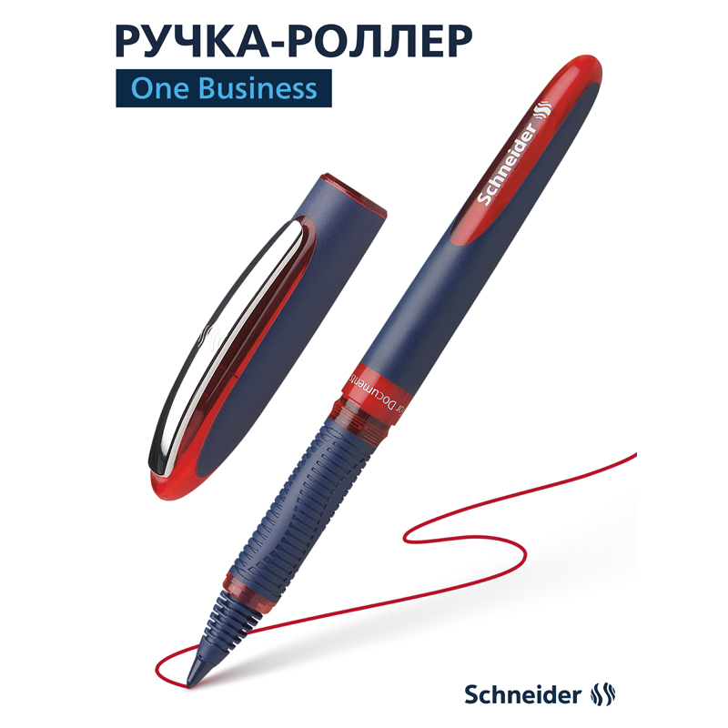 Ручка-роллер Schneider One Business с круглым прорезиненным корпусом и металлическим клипом. Диаметр пишущего узла ручки составляет 0,8 мм, толщина линии письма – 0,6 мм. Длина письма может достигать 2000 метров! Чернильный роллер с ультрамягким наконечником из прочного пластика.Также есть окно-индикатор чернил. Цвет элементов корпуса соответствует красному цвету чернил. Быстросохнущие, свето- и водоустойчивые чернила соответствуют международному стандарту качества ISO 14145-2 и отлично подходят для заполнения и подписи документов. Письменные принадлежности Schneider разрабатываются и производятся только в Германии.<br/>• Цвет чернил: красный;<br/>• Особенность чернил: свето-и водоустойчивые, соответствуют стандарту "Для документов";<br/>• Толщина линии письма: 0.6 мм;<br/>• Длина линии письма: 2000 м<br/>• Цвет корпуса: тёмно-синий; <br/>• Страна производства: Германия