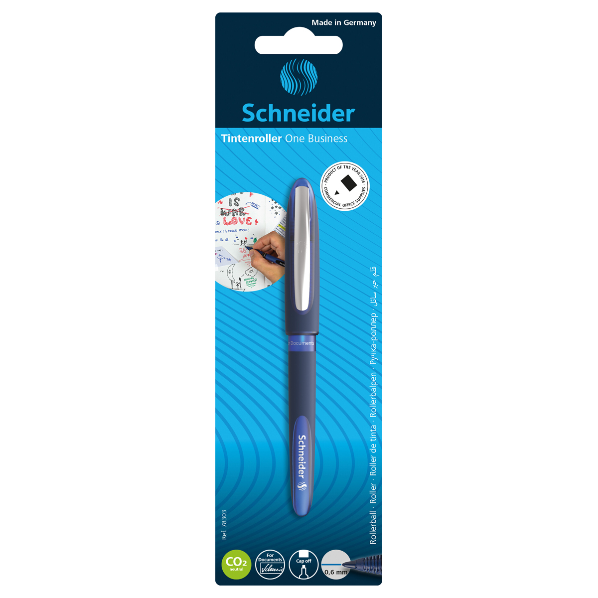 УЦЕНКА - Ручка-роллер Schneider "One Business" синяя, 0,8мм, одноразовая