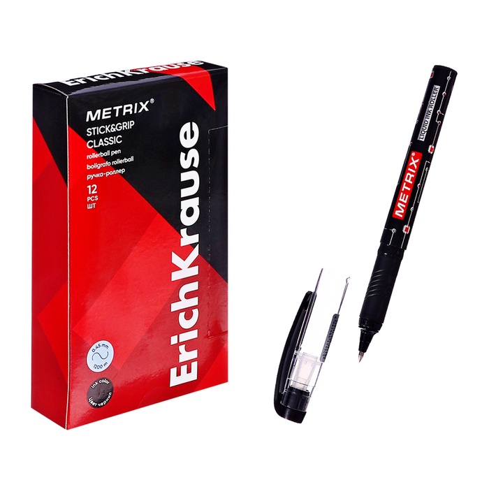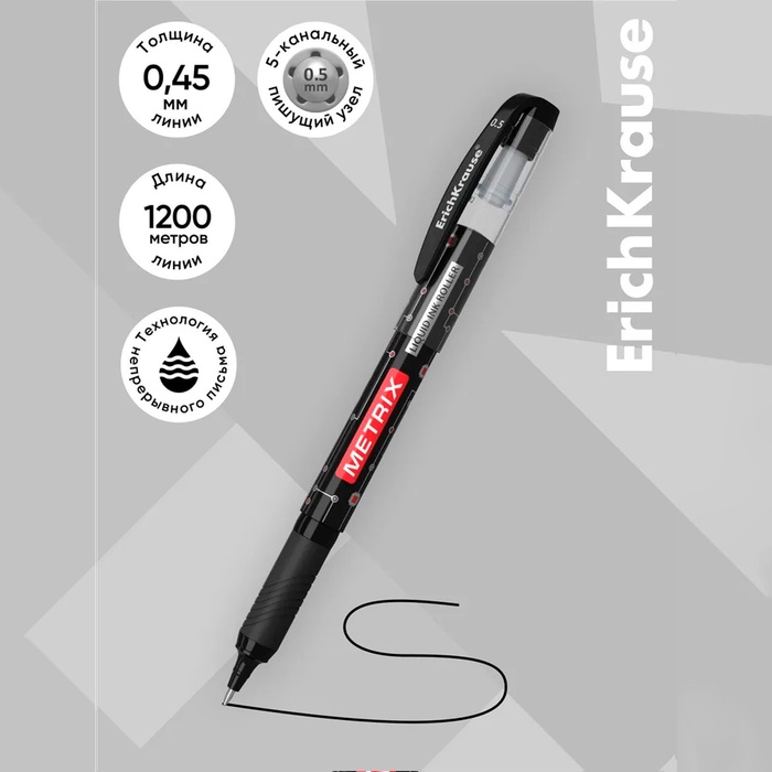Ручка-роллер ErichKrause Marathon Stick, узел 0.5 мм, чернила чёрные, мягкое и тонкое письмо, длина линии письма 1200 метров