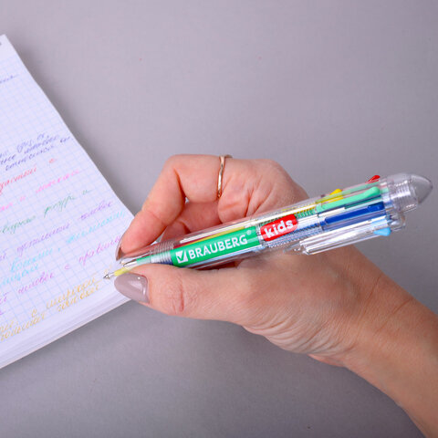Автоматическая шариковая ручка BRAUBERG KIDS умеет писать 8 цветами! Станет незаменимым помощником в учёбе и работе.