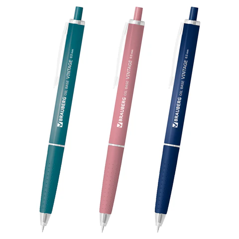 Ручка шариковая автоматическая BRAUBERG "OIL-BASE VINTAGE", корпус ассорти, СИНЯЯ, пишущий узел 0,5 мм, линия письма 0,3 мм, 144500