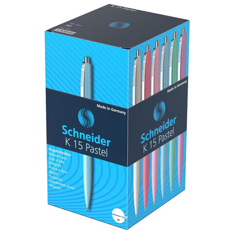 Классическая шариковая автоматическая ручка SCHNEIDER "К15" в круглом пластиковом корпусе, со стальным клипом и металлической кнопкой. Поставляется в нескольких вариантах цвета (без возможности выбора).
