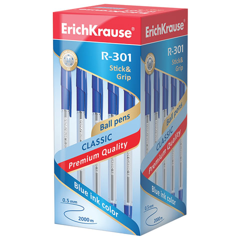 Классическая шариковая ручка ERICH KRAUSE серии R-301 со стандартным типом пишущего узла и заменяемым стержнем.