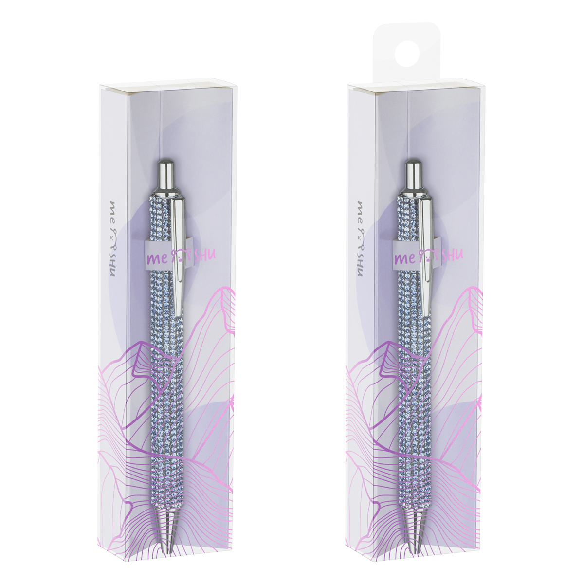 Синяя шариковая ручка MESHU "Sky diamond" – это не только пишущая принадлежность, но и яркий аксессуар для тех, кто хочет выделяться. Серебристый корпус из металла украшен стразами. Благодаря необычному декору и яркой индивидуальной упаковке с голографическими элементами ручка — готовое решение для подарка.