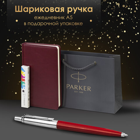 Материалы деталей отделки и корпуса выполнены из нержавеющей стали, что позволит сохранить изделие в идеальном состоянии. В набор входит ручка, ежедневник недатированный А5 красный, подарочный пакет с логотипом PARKER.