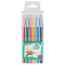 На каждой ручке есть колпачок с клипом – можно закрепить её на одежде или тетради. Цвет чернил – ассорти. Цвет деталей корпуса соответствует цвету чернил. Набор упакован в ПВХ чехол с европодвесом.