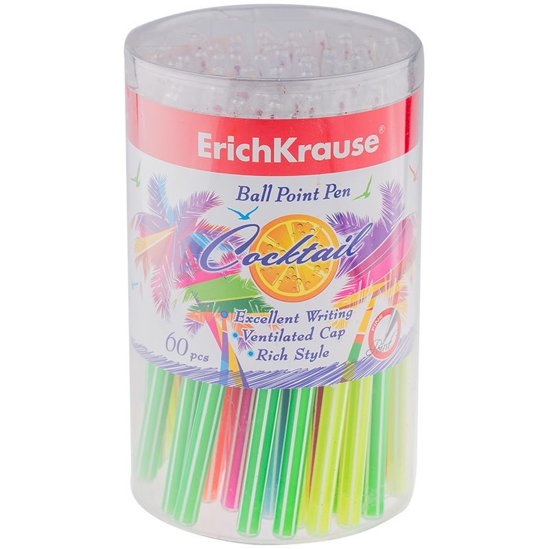Яркая молодежная шариковая ручка с контрастными полосами на корпусе. Вентилируемый колпачок. В ассортименте 5 цветов корпуса, упакованные в платиковый стакан
