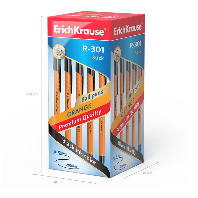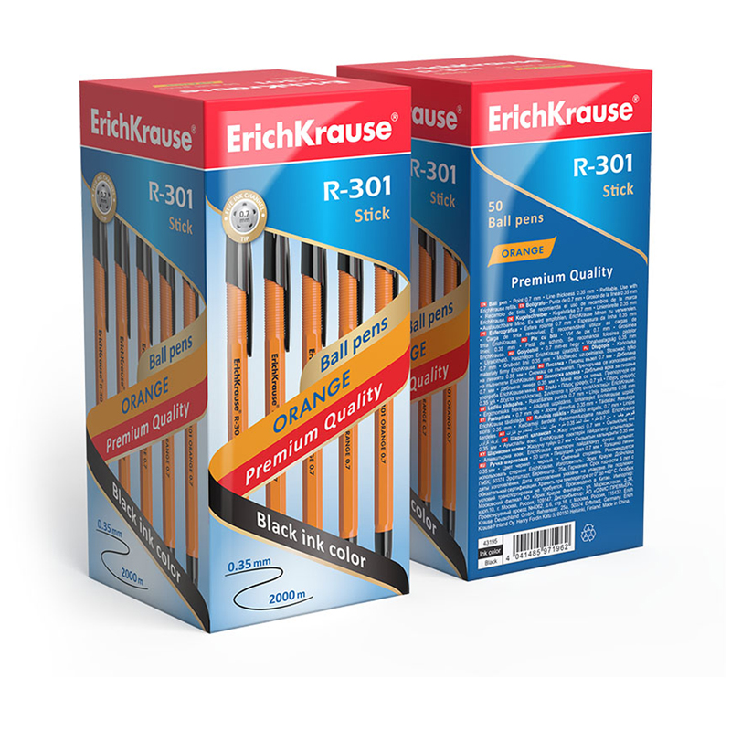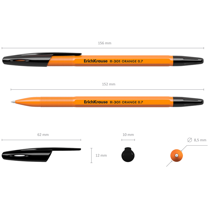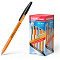 Шариковая ручка в оранжевом корпусе. Цвет вентилируемого колпачка соответствует цвету чернил