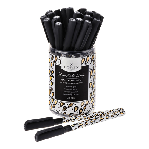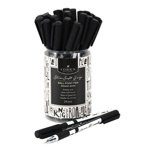 Ручка шариковая " Lorex " Grunge 4 ever slim soft grip синяя 0,5мм, игольчатый пишущий узел, резиновый держатель, чернила на масляной основе, металлический наконечник, покрытие soft-touch, черно-белый корпус, пластиковый тубус