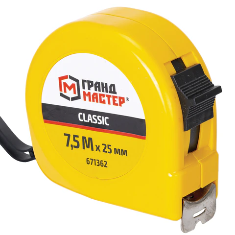 Рулетка ГРАНДМАСТЕР применяется для измерения размеров поверхностей и расстояний. Благодаря эргономичному дизайну и высокому классу точности измерений рулетка станет незаменимым помощником в быту и профессиональной деятельности.