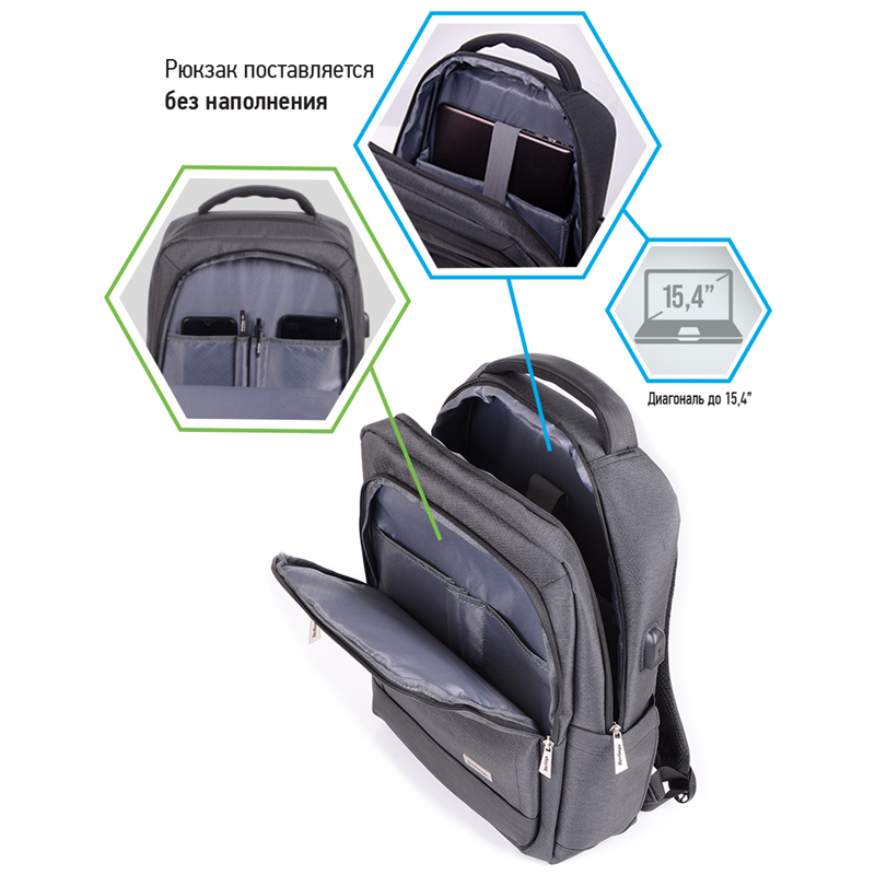 Городской рюкзак серии City – строгий, лаконичный и универсальный, отличается стильным оформлением и функциональностью. В модели предусмотрены USB-разъем, несколько отделений, удобные карманы, отделение для ноутбука, а также лента для крепления к чемодану, что является значительным преимуществом во время поездок. Материал рюкзака – водонепроницаемый полиэстер со специальным покрытием. Эргономичная спинка и широкие лямки позволят равномерно распределить нагрузку на позвоночник. Внутренний органайзер и дополнительные карманы помогают поддерживать порядок и обеспечивает бережное хранение необходимых документов.