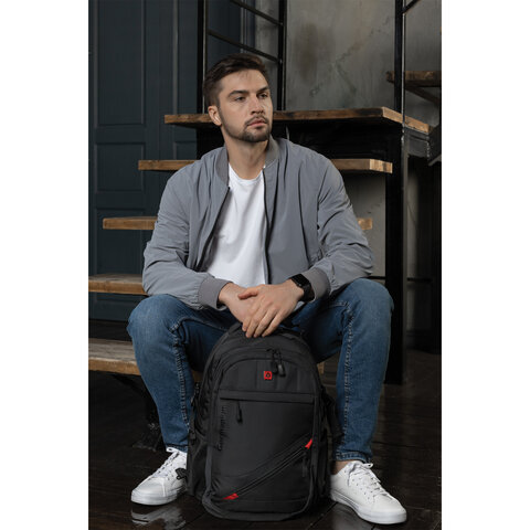 Рюкзак HEIKKI SECURE (ХЕЙКИ) универсальный, 2 отделения, отделение для ноутбука, черный, 46x31x19 см, 273894