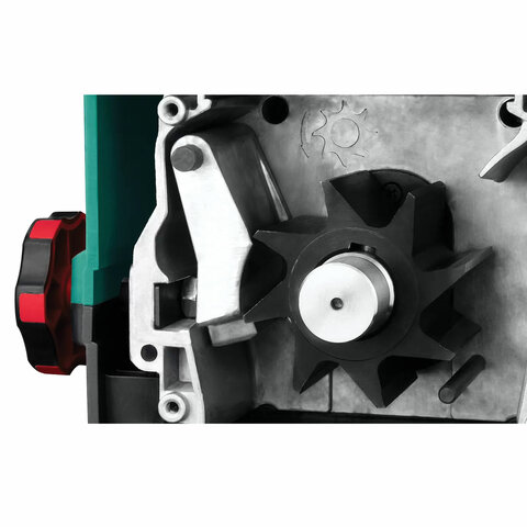 Отличается высокой производительностью, малошумностью и удобством эксплуатации. Двигатель агрегата защищен от перегрева, что повышает срок службы. Контейнер вмещает до 60 литров отходов. Измельчитель оснащен колесами, что обеспечивает легкость перемещения по участку.