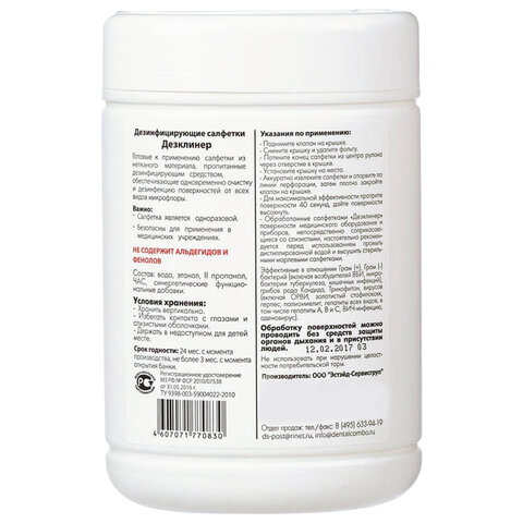 Готовые салфетки ДЕЗКЛИНЕР из нетканого материала, пропитанные дезинфицирующим средством, обеспечивают одновременную защиту и дезинфекцию поверхностей от всех видов микрофлоры.