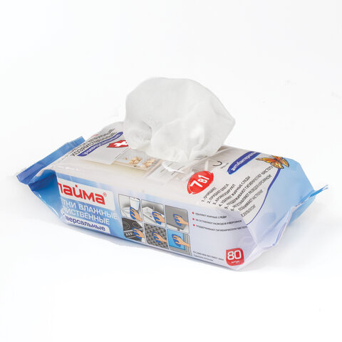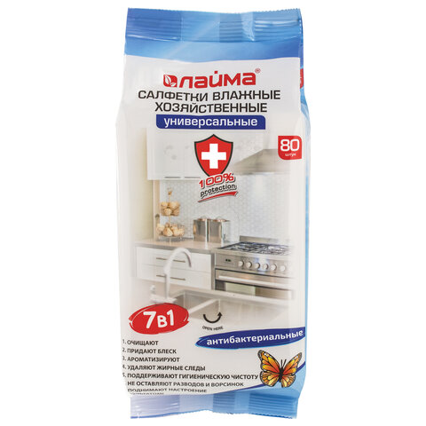 Влажные хозяйственные салфетки LAIMA универсальные "7 в 1" идеально подходят для быстрой уборки, удобны в применении. Предназначены для очистки пластиковых и деревянных поверхностей, пола, бытовых предметов, кухни и др.