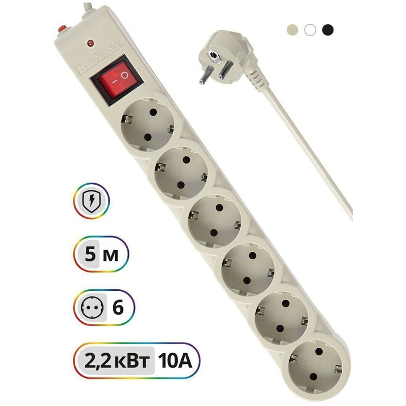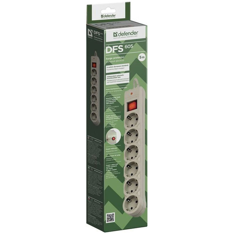 Сетевые фильтры Defender DFS 600 серии защищают от короткого замыкания, перегрузок по току и импульсных помех. «На борту» у сетевого фильтра – 6 розеток «евростандарт», корпус выполнен из прочного негорючего пластика ABS. Удобный широкий выключатель с защитой от случайного выключения расположен сверху