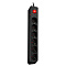 Особое внимание традиционно уделено безопасности. За сохранность самих фильтров-удлинителей и подключенных к ним приборов ответственны варисторная защита от перегрузок и термоконтроль, способные выдержать любые неполадки в питающей сети, а также обеспечить защиту от высоковольтных разрядов. Специальные шторки внутри розеток не допускают попадания посторонних предметов в разъем, что будет особенно полезно при использовании в одном помещении с детьми и домашними животными. Ну и, конечно, приборы абсолютно пожаробезопасны и защищены от физических воздействий благодаря корпусу из ударопрочного и негорючего ABS-пластика.