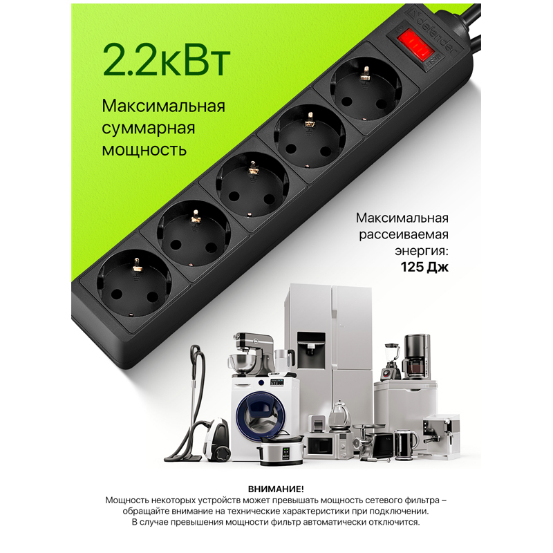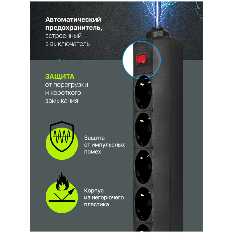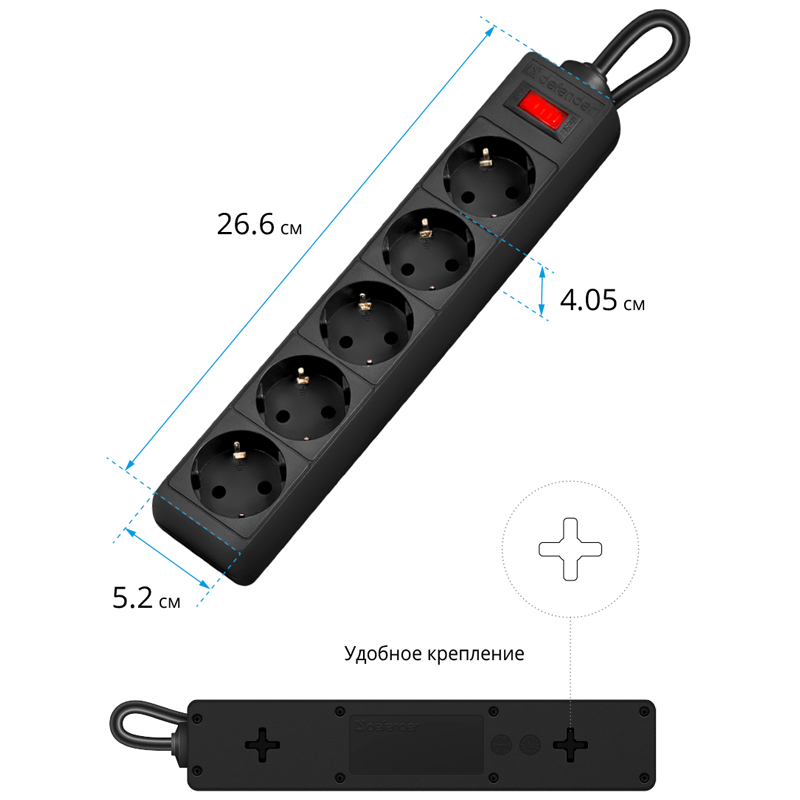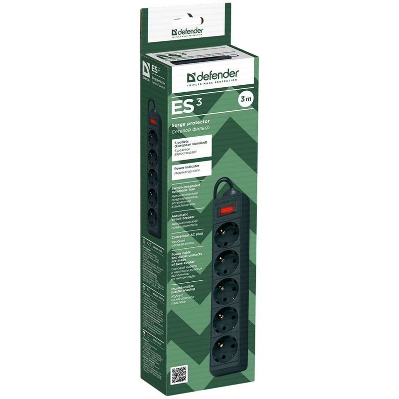 Сетевой фильтр Defender ES на «борту» имеет пять розеток евростандарт, защищает электронную технику от короткого замыкания, перегрузок по току и импульсных помех. Компактный корпус сетевого фильтра выполнен из прочного негорючего пластика, сетевой шнур и контакты розеток - из чистой меди