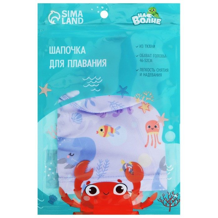 Шапочка для плавания детская ONLYTOP SWIM, тканевая, обхват 46-52 см, цвет фиолетовый