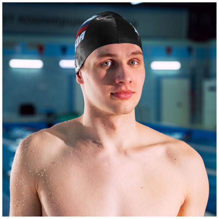 Шапочка для плавания, тканевая, для взрослых, обхват 54-60 см, цвет голубой