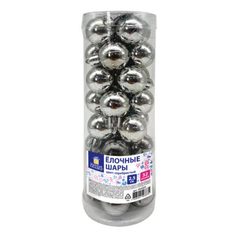 Шары ёлочные 32 шт, 2,5 см, "Tender Shine", пластик, серебристые, глянец, ЗОЛОТАЯ СКАЗКА, 592501
