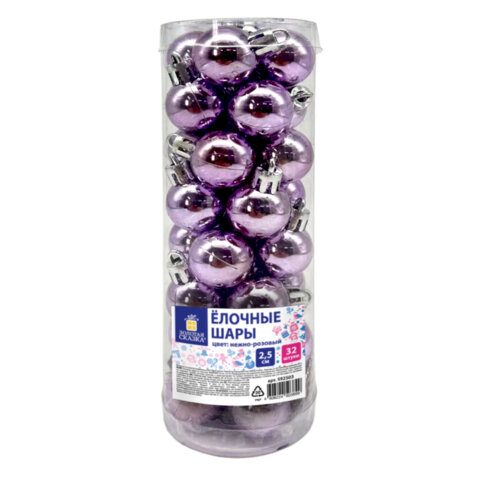 Шары ёлочные 32 шт, 2,5 см, "Tender Shine", пластик, розовые, глянец, ЗОЛОТАЯ СКАЗКА, 592503