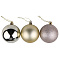 Набор поможет преобразить интерьер, наполнить его сладостной атмосферой наступающих зимних праздников. Елочные шары - непременный атрибут Нового года. Цвет "светлое золото" в сочетании с отделкой разной фактуры создадут праздничное настроение.