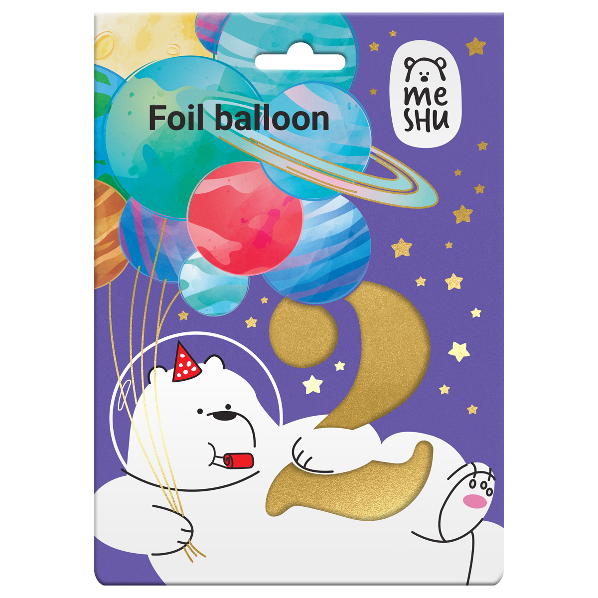 Фольгированный воздушный шар MESHU в форме цифры «2» поможет оформить помещение для проведения тематической вечеринки, детского или корпоративного праздника. Он также подойдёт в качестве дополнения к подарку имениннику. Размер изделия — 40*100 см. <br/>Крупный золотой шар станет ярким акцентом в праздничной обстановке, его легко сделать центром композиции в фотозоне. Благодаря специальным ушкам изделия можно подвязать лентой.<br/>В комплект входит пластиковая трубочка, при помощи которой шар наполняется воздухом или гелием через клапан. Надутое изделие сохраняет первоначальный вид в течение 7-10 дней. Шар помещён в яркий индивидуальный пакет с европодвесом. Дизайн упаковки с милым персонажем поможет обратить внимание покупателей на товар.<br/>• Материал: фольга;<br/>• Размер: 40*100 см;<br/>• Цвет: золотой;<br/>• Индивидуальная упаковка: пакет с европодвесом.