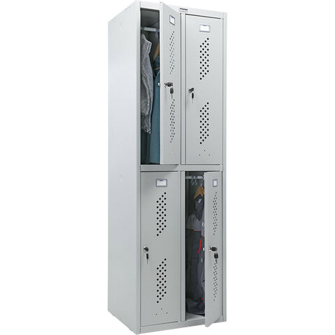 Шкаф металлический для одежды ПРАКТИК "LS-22", четырехсекционный, 1830х600х500 мм, 29 кг