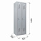 Шкаф имеет 2 раздельные секции и предназначен для двух пользователей. На дверях установлены ключевые замки (2000 комбинаций). На каждую дверь в комплекте 2 ключа.
