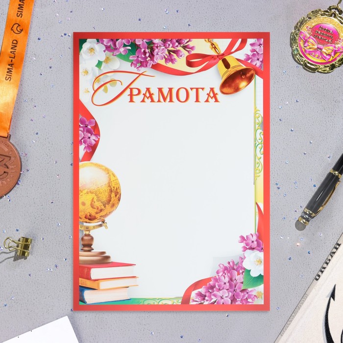 Грамота "Школьная" красно-синее поля, бумага, А4